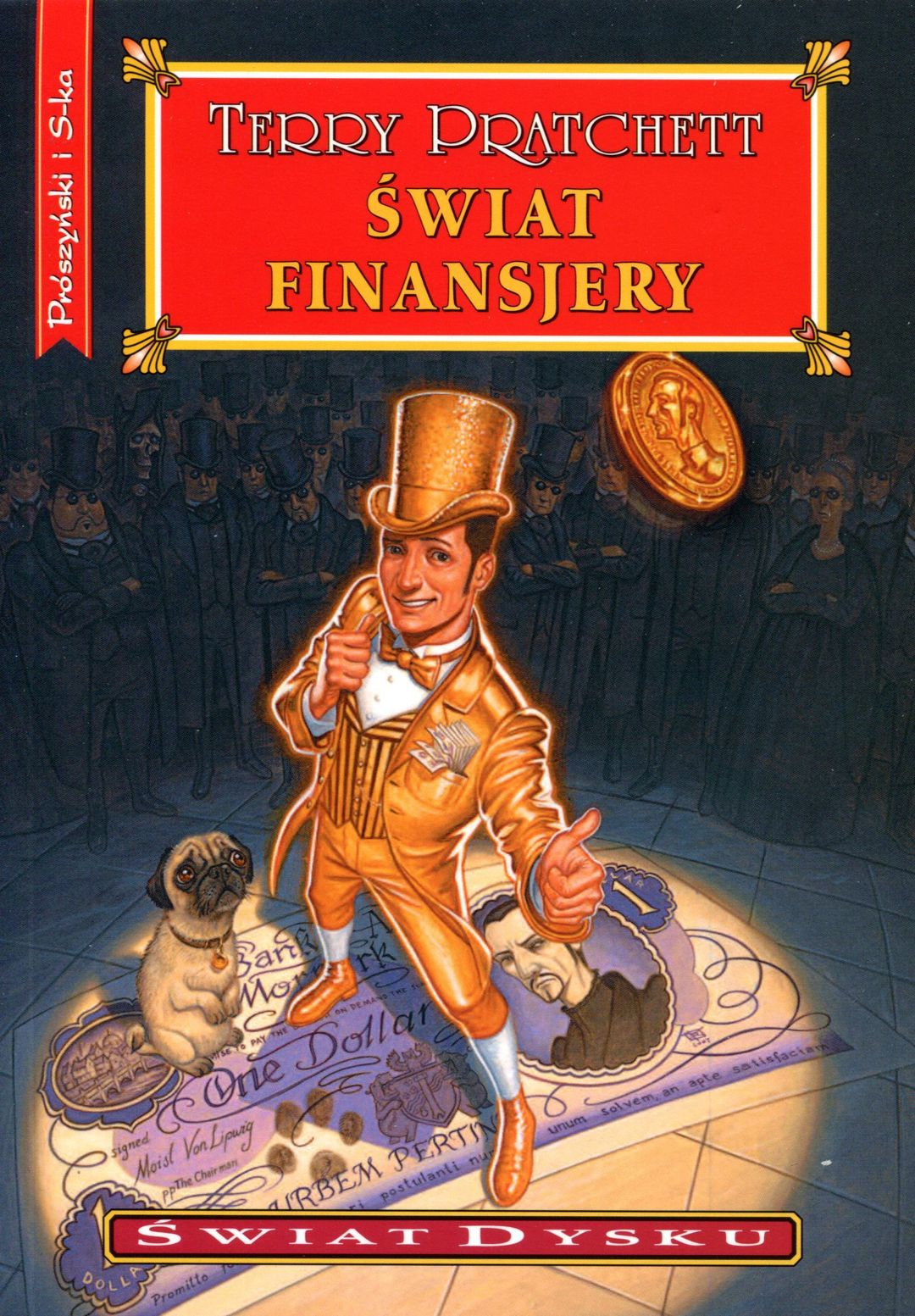 Była to propozycja nie do odrzucenia... Kto by nie chciał zarządzać Królewską Mennicą w Ankh-Morpork i sąsiadującym z nią bankiem? To posada na całe życie. Ale były oszust, Most von Lipwig, odkrywa, że niekoniecznie znaczy to: na długo. Główny kasjer jest prawie na pewno wampirem. W piwnicy kryje się coś bezimiennego (a i sama piwnica jest raczej bezimienna). Okazuje się też, że Królewska Mennica przynosi straty. Trzystuletni mag zaczepia jego dziewczynę, a jemu samemu grozi ujawnienie mrocznej przeszłości, choć Gildia Skrytobójców może załatwić go wcześniej. Prawdę mówiąc, bardzo wielu ludzi chciałoby widzieć go martwym. Aha... I codziennie musi wyprowadzać prezesa na spacer. Gdzie nie spojrzy, pojawiają się nowi wrogowie. Czy znajdzie swoje miejsce w tym nowym ŚWIECIE FINANSJERY?