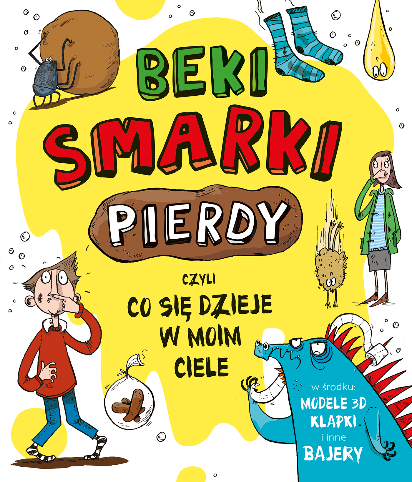 "Beki, smarki, pierdy" to znakomita książka interaktywna, która w zabawny i ciekawy sposób mówi o sikach, kupie, krwi, ślinie, bąkach, wymiotach i innych paskudztwach. W środku znajdziecie modele 3D, klapki, wysuwane elementy – na każdej planszy są bajery, które kryją prawdziwą wiedzę. [Nota Wydawcy]